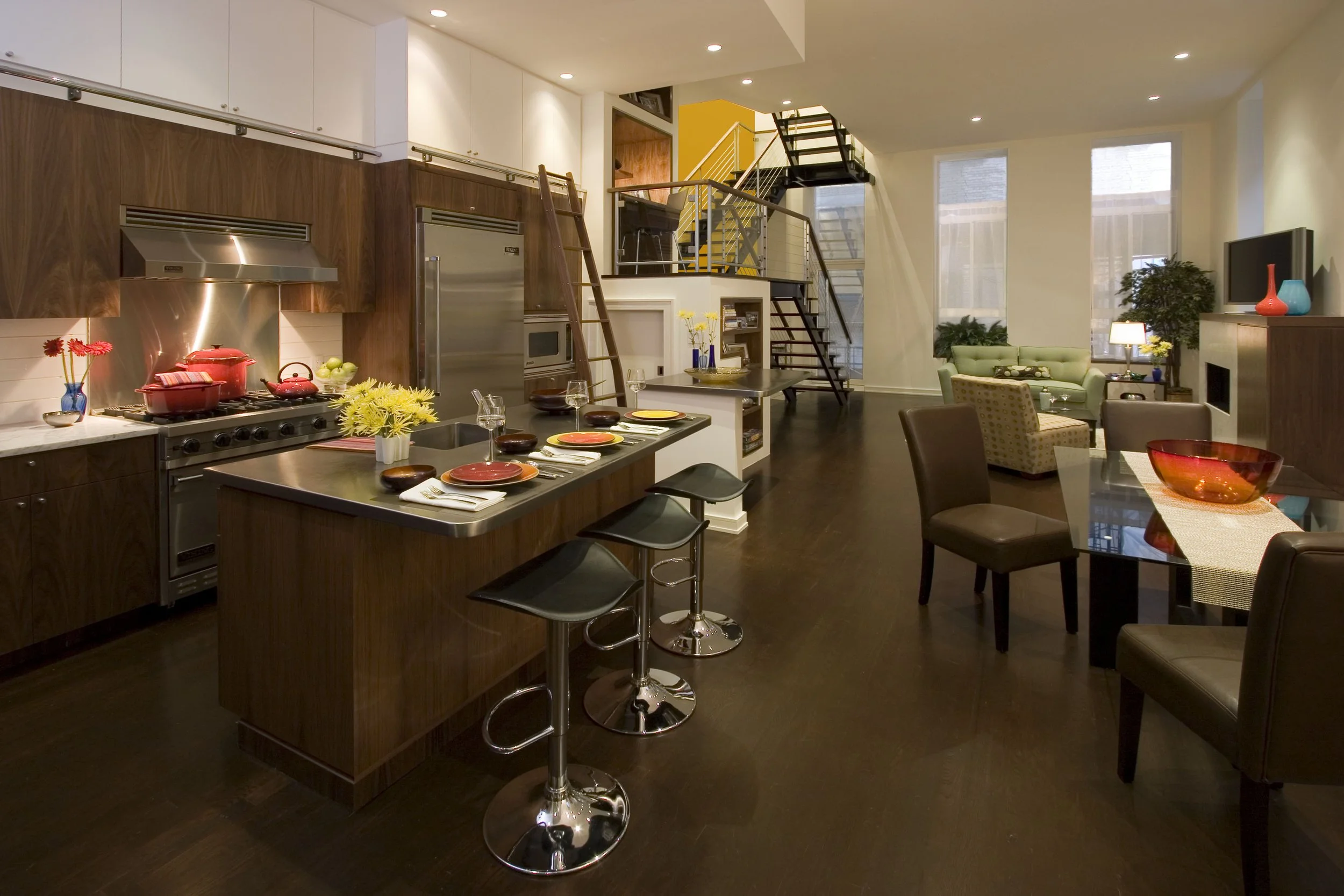 Greenwich Village Loft — no walls with furniture defining the spaces.